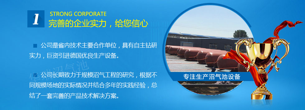 生產(chǎn)設(shè)備和生產(chǎn)技術(shù)人員,技術(shù)水平高,創(chuàng)新能力強的沼氣池設(shè)計研發(fā)隊伍,使公司不斷發(fā)展壯氣浮機大并連年取得新突破。我們時水囊刻謹(jǐn)記以誠信之心取信于社會,照現(xiàn)代企業(yè)制度的要求提高沼氣設(shè)備經(jīng)營決策水平管理,秉承以仁為本以質(zhì)取勝的